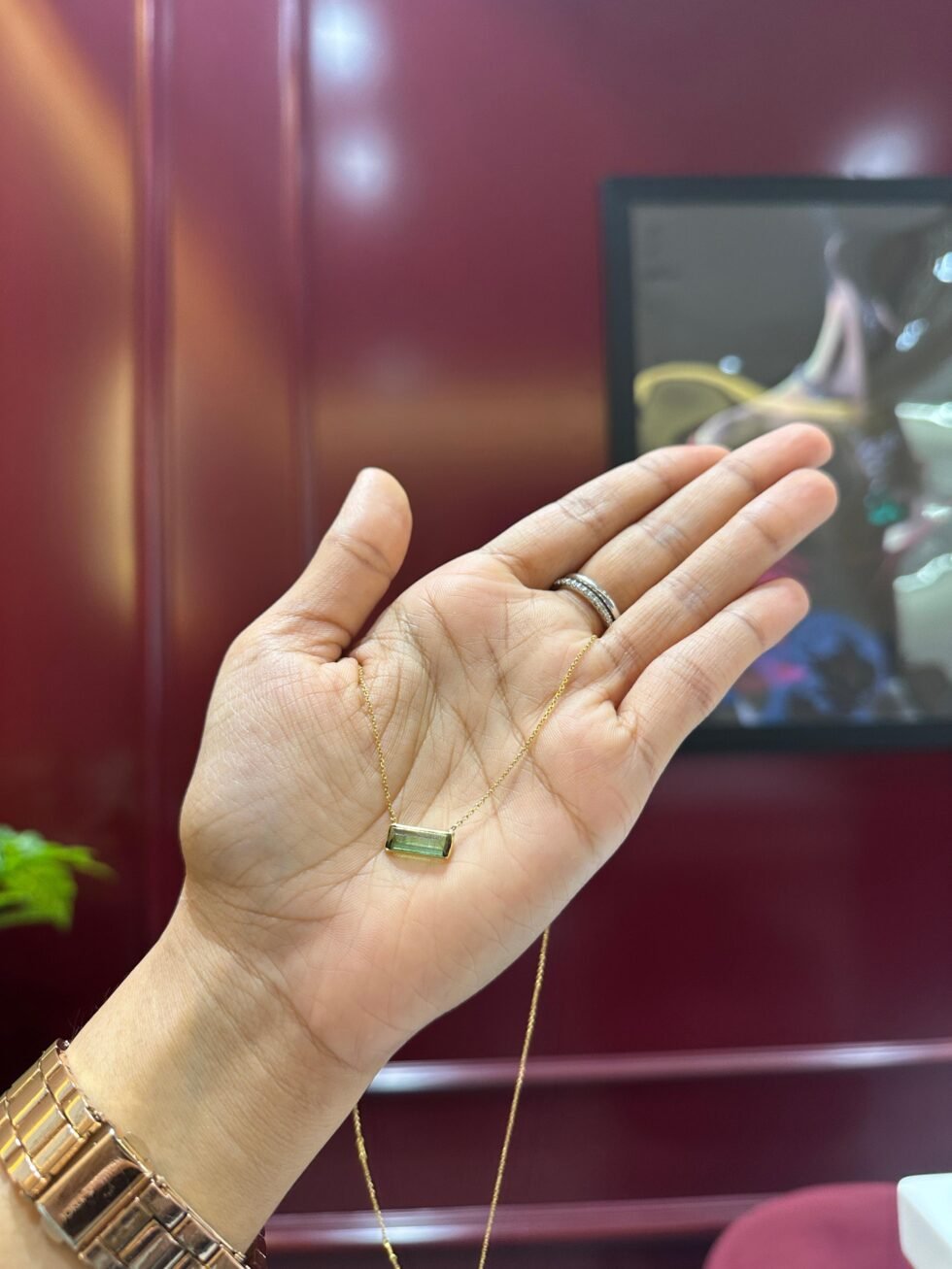 Delicate Green Tourmaline Pendant Chain in solid 18kt gold.Elegant, versatile, and radiant with natural gemstone energy.Ideal for layering or wearing solo for understated luxury.