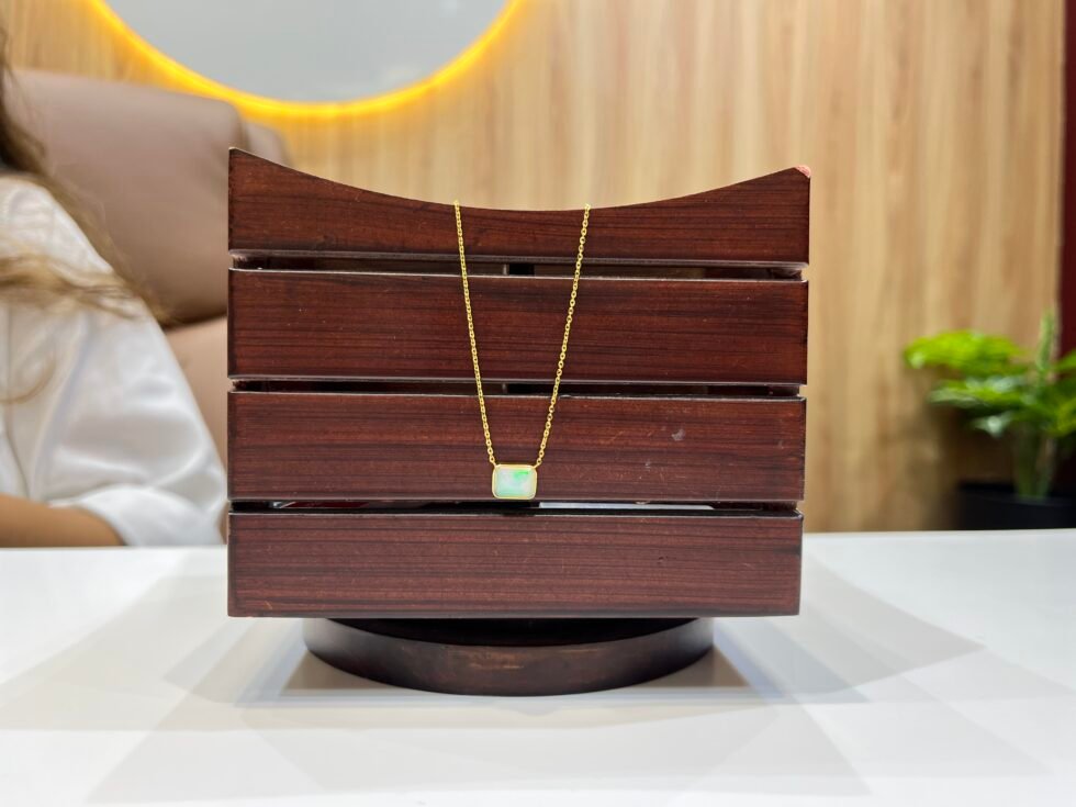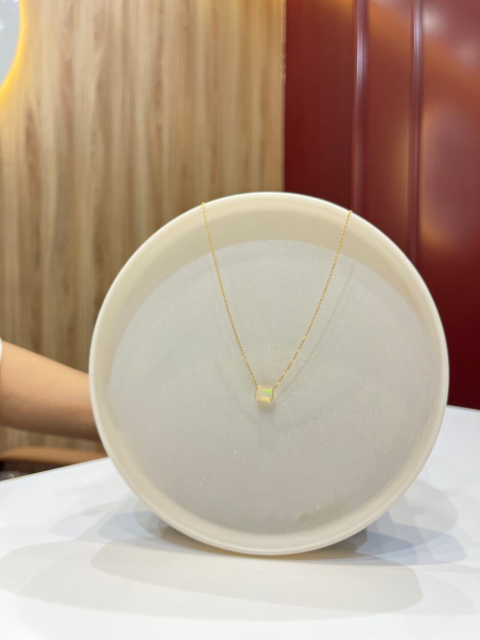 18kt Gold Opal Chain – glowing natural opal with soft, iridescent elegance.