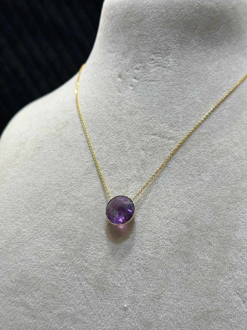 Purple Amethyst Chain crafted in pure 18kt gold.Features a vivid natural amethyst known for its rich purple hue.Perfect for gifting, daily wear, and elevated fine-jewelry style.