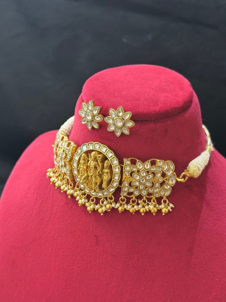 Traditionally worn during rituals and ceremonies, temple jewelry has now found a refined modern form. The choker silhouette makes this Ram Darbar piece versatile—perfect for weddings, festivals, poojas, and cultural celebrations, while still feeling contemporary and wearable.